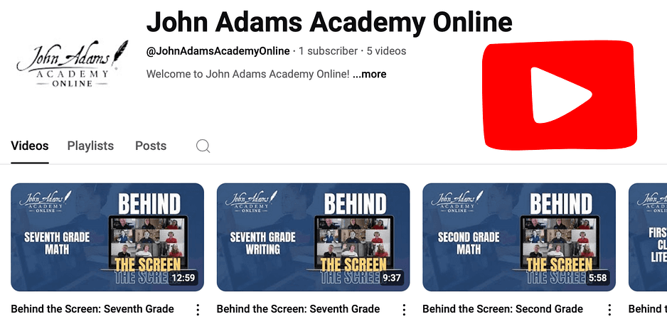 Visit our YouTube channel to watch “Behind the Screens”—a special video series that gives you a real-time look into our live online classrooms. See how our passionate mentors lead engaging, discussion-based lessons, how scholars interact and collaborate, and how classical education comes to life in a virtual setting. Whether you're exploring enrollment or just want a deeper look at our unique approach, these videos offer an authentic glimpse into the John Adams Academy Online experience.